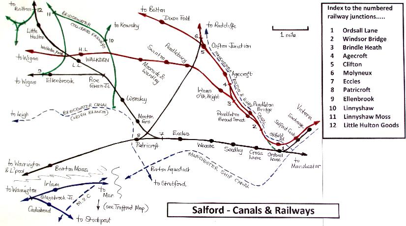 The City of Salford Metropolitan Borough was formed in 1974 from the former City & County Borough of Salford, the Municipal Boroughs of Eccles and Swinton & Pendlebury and the Urban Districts of Irlam and Worsley (the latter including the towns of Walkden and Little Hulton). Some suburbs of the borough are, to the west: Ordsall, Weaste, Langworthy, Ellenbrook, Monton Green, Patricroft and Barton upon Irwell. To the north: Broughton, Kersal, Pendleton, Wallness, Irlams o’th Height and Clifton.